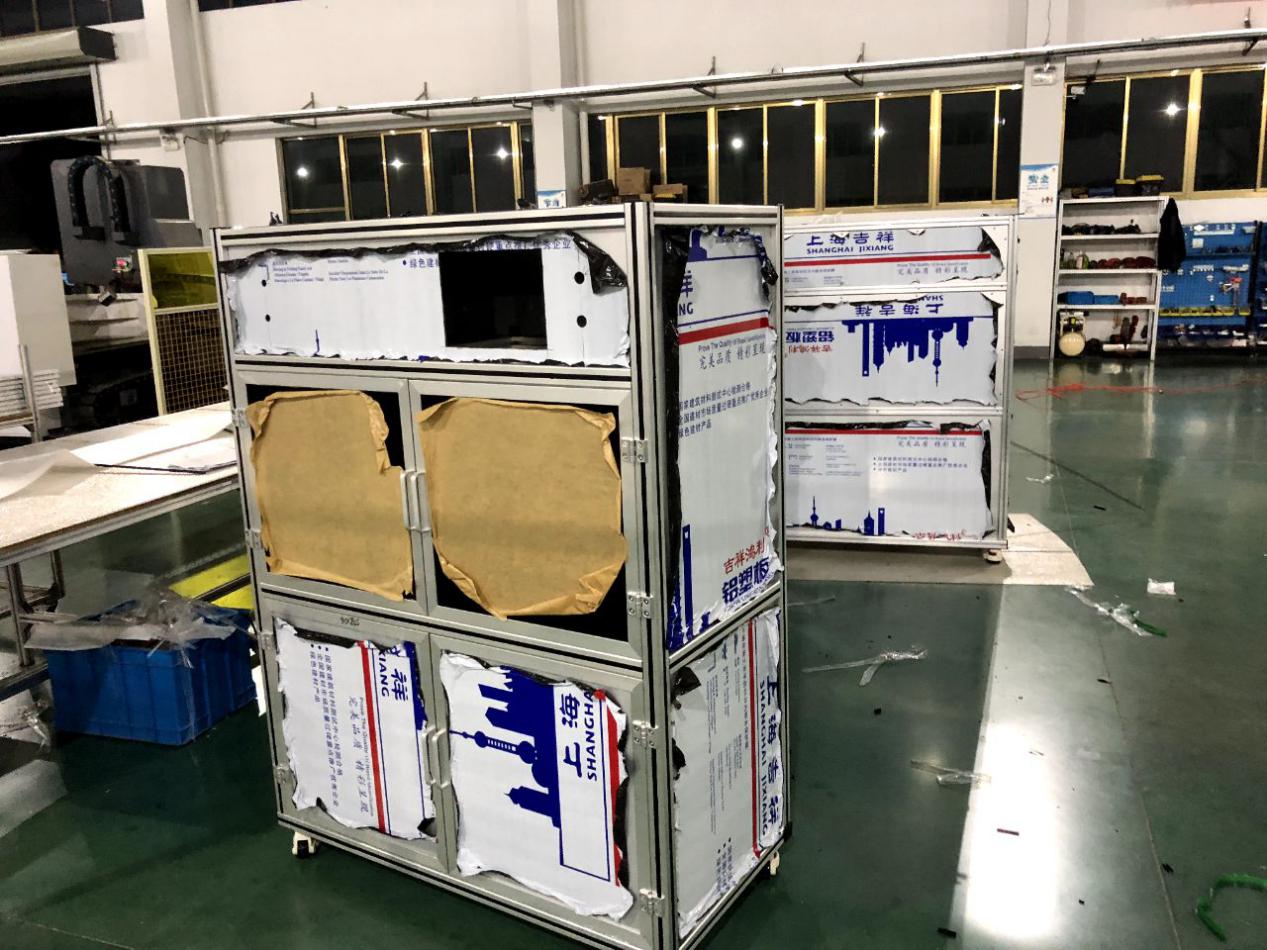 了解到王總我當(dāng)時(shí)就問(wèn)一下王總的機(jī)架的具體承重及尺寸,并且我們互相建立了微信技術(shù)小群1 對(duì)1技術(shù)參與直接溝通方案設(shè)計(jì)。約在2天經(jīng)過(guò)技術(shù)的1對(duì)1的技術(shù)服務(wù),我們雙方把方案敲定了。因?yàn)闀r(shí)間的關(guān)系,我們第一次試制了5臺(tái)。自動(dòng)化設(shè)備用鋁型材框架+鈑金做門。并與7月30號(hào)順利交期。王總他們收到貨后經(jīng)過(guò)性能測(cè)試,鋁型材框架在承載力和重量及生產(chǎn)效量能都遠(yuǎn)遠(yuǎn)大于原來(lái)鈑金焊接機(jī)架。王總為此非常開心。
